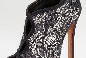 Lace continues to be a hot trend in footwear styles all across the board and this Schutz Lace Peep-Toe Bootie trimmed in suede is just another popular silhouette for this feminine trend. Featuring an eyelet styled vamp that perfectly leads to a peep-toe (a great design decision as a closed toe wouldn't do it justice), and 4 1/2" covered heel with 1/2" hidden platform, this lace beauty is a great way to add some texture to a classic solid or clean look as well; it also is a great accent to the ever popular tuxedo trend look.