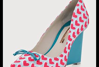 Our heart is all aflutter over this super cute and very chic pointed toe wedge and not just because it is covered in pink hearts. Everything about the Sophia Webster Lola Heart-Print Wedge screams with girlish delight. Summer is the time and love and we think this darling wedge is a great way to celebrate that. We love the all-over heart print, the delicate vinyl turquoise bow detail at toe, the sexy low-cut vamp, and the comfortable 3 1/2"turquoise covered wedge heel. We won't be surprised when you fall in love with this beauty. Originally $395.00, you can now snap it for only $222.00 at Neiman Marcus.