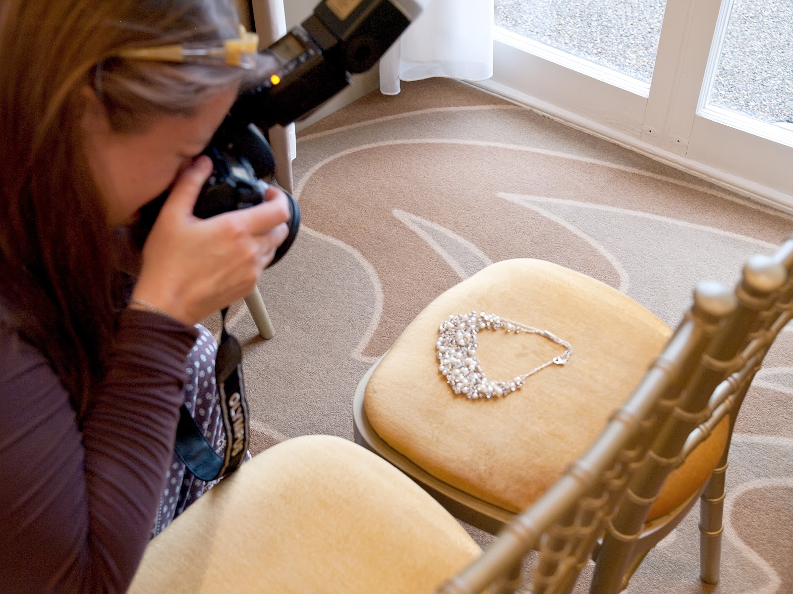 Jaye at work photographing a Rose and Aster necklace