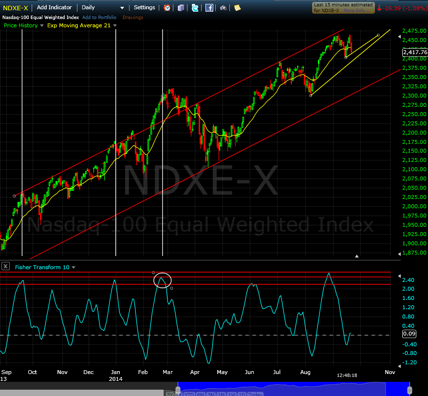 So that would be the results of the study, i.e., that a bounce should be expected between here and a breach of the 5 ema (lows) on the DOW.