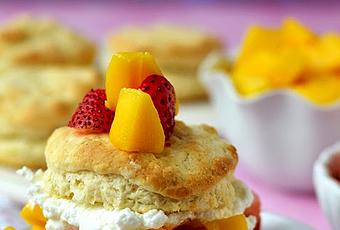 If you use self rising flour, then there's no need to add salt or leaving agent to the dough. But if you don't have it on hand, then make your own self rising flour, I included the instructions in the recipe below.Traditionally these slightly sweet biscuits are served with macerated strawberries and whipped cream. I happened to have a ripe mango too on hand, so I added that in for a slight tropical twist.