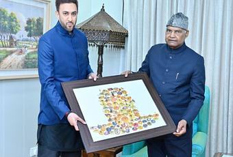 New Delhi (India), December 21: Former Hon’ble President of India, Shri Ram Nath Kovind was presented with a masterpiece Shiva Lingam clicked, visualized and created by ace photographer, Varun Joshi at his residence on December 15th. The Shiva Lingam portrait is an amalgamation of 84 lingas clicked across Ujjain. Sri Kovind was impressed by the work and complimented photographer Varun Joshi on his creativity.
