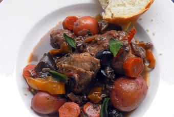 Delicious! A Rich wine sauce, succulent pieces of chicken, delicious bites of vegetables adding a various textures to the sauce.