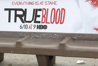 A friend of mine saw this today while driving to work in Los Angeles and took a photo. When the promotion signs start appearing all over town, we all know that True Blood’s premiere cannot be far behind. Nice to look at while waiting for the bus!