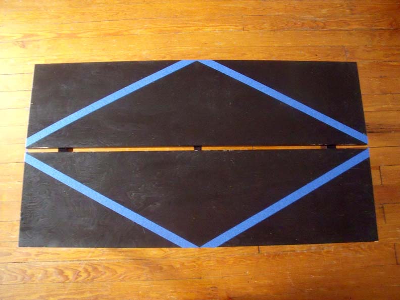 Step 7: Repeat step 6 in the table's other three quadrants until the table looks something like this. Take this chance to rub your finger securely over all of your tape to prevent paint from seeping beneath it later.