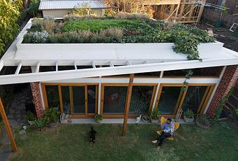 At over 500 square feet, the house’s green roof may be its most powerful—and most expensive—environmental statement. It cost $8,000 to waterproof, and $7,000 to landscape. Water from the roof feeds the toilet and the garden’s watering system, and the garden itself insulates the house and keeps gas bills low in winter. It also means there’s no need for any artificial cooling in the summer.