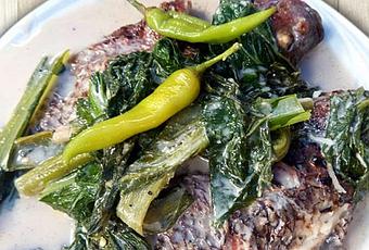 - Add pechay (or mustard leaves) then simmer till the leaves are cooked.