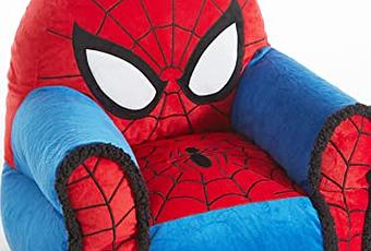 -- Your child will feel like a superhero snuggled up in this cozy chair featuring Spiderman's iconic mask and spiderweb.