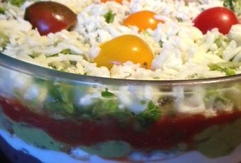 - Guacamole layer: Smash avocados with a fork and add remaining ingredients. Mix and spread on top of Salsa Layer.