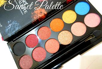 Sleek I-Divine eye shadow palette Sunset is a beautiful 12 eye shadow palette containing bright, vibrant, fiery colors! I love the warm tone of this palette, its fabulous for the Indian complexion! The palette contains rich golds, coppers, berry shades and a blue and matte black as well. Almost all shades have a frost finish, a great silky smooth texture and intense pigmentation!