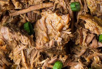 A 7-ingredient slow cooker pulled beef recipe that cooks for 8-10 hours! This pulled beef is very versatile and can be used on sandwiches, in tacos, or in rice bowls!