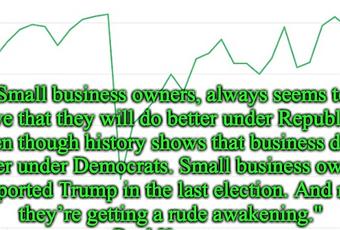 One odd feature of U.S. politics is that businesspeople, especially small business owners, always seems to believe that they will do better under Republicans, even though history shows that business does better under Democrats. Small business owners supported Trump in the last election, despite ample evidence that he would be very bad for business.