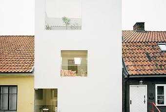 Designed by Stockholm-based architects Johan Oscarson and Jonas Elding in Landskrona, Sweden, this 1,300-square-foot townhouse, completed in 2009, presents an elegant approach to urban infill. Tucked between two older buildings, the stark, white structure sits in an 800-square-foot lot that measures just 15 feet wide.