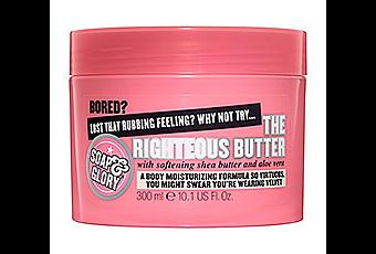 Soap & Glory The Righteous Butter is a great body butter that smells insanely delicious. It’s a rich, thick moisturizer with an airy-light, “whippy” consistency. It instantly smooths your skin and leaves is super supple thanks to the benefits of this product’s starring attraction - shea butter. It smells really great if you like candy-like, bubble gum smelling products. In fact, the fragrance will last for hours after use. Enjoy velvety smooth skin that smells great.