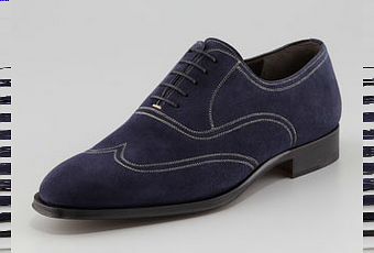 Bergdorf Goodman Topstitched Suede Wing-TipSoftness reigns! Think more visual and tactile than wispy though. The topstitched suede wing-tip from Bergdorf Goodman in a pleasant navy is a refreshing, softer change from the severity of black or the earthiness of brown while still remaining a strong solid shoe. It being executed in a velvety suede only seals the softness deal. The contrast stitching reminiscent of denim is just icing on the cake. Available now at BergdorfGoodman.com.
