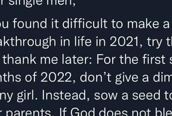 Omokri additionally instructed males who discovered it troublesome to get a breakthrough in 2021, to not give cash to ladies in 2022. He added that they need to sow a seed within the lifetime of their dad and mom for the primary 6 months of the brand new yr and watch God bless them.