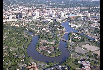 That's Wichita, KS, right there, the city which has been our family's home since 2006 and will, quite possibly, remain our home until Melissa and I shuffle off to a better world. It's a nice picture (overlooking Central Riverside Park in the bend of the Arkansas River) of a nice city. It has many qualities that we like very much (as well as more than a few that we don't). My question: does it have a political theory? Or, really, can it?