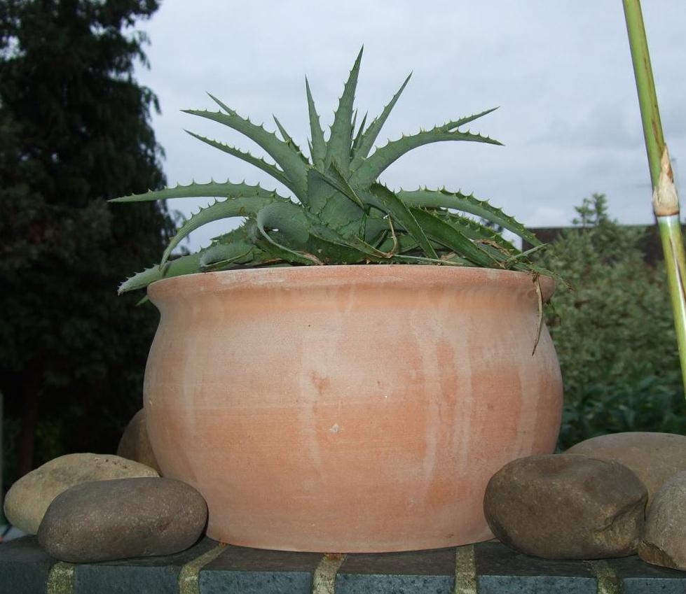 And fall it will not, much to my surprise this pot is exceptionally heavy for its size. When I first tried to pick it up I nearly fell over and Gaz thought I was just messing about. When he lifted it he instantly knew I wasn't. We both had to lift it to the trolley and once on the till (which has a scale on it) it weighed a whopping 30kg!! Anyway, with a bit of a struggle we managed to lift this 'small' pot in it's place and I'm finally pleased and content with what's on top of the pillar. I still haven't decided what to plant in it though, probably a glaucous leafed Yucca to remain there permanently. Or a mixture of tender succulents, with some trailing down the sides of the pot, as a temporary, yearly changing display. Lots of time to decide!