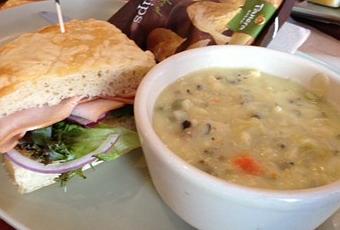 I ordered Chicken and Wild Rice Soup with the Sierra Turkey (light on the mayo). I have a serious love of Chicken and Wild Rice soup. Thick, creamy, packed full of veggies. It is especially popular in Minnesota in the winter. But then again, why wouldn’t it be? It’s snowy and cold here. I left full and happy. Good soup and it was extra nice to spend a bonus hour with my husband who works so much!