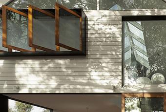 The rear of the Chistopher Polly-designed Elliott Ripper house shows the most impactful design moves—windows that allow light and air to enter the house. Breezway Altair louvers, Viridian Comfort Plus low-e glass, and Western Red Cedar–framed sliding glass doors on the ground floor and pivot stay windows on the second story allow residents to control how open or closed the house is. Photo by: Brett Boardman