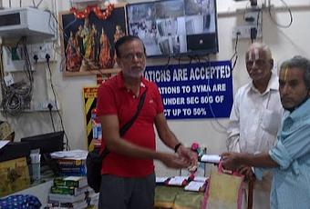 Every year we remember him on 25th of August – this year on Nation’s Independence day in our Eye camp conducted alongwith Sri Sankara Eye Hospital, Pammal – 120 people were screened ~ 13 persons were identified, were taken to Sri Sankara Eye Hospital, Pammal. Cataract surgery was done free for them, later, they were brought back to Triplicane. 22 persons were prescribed spectacles. The eye-glasses were made by Sri Sankara Eye Hospital, Pammal and they were distributed in a function held at SYMA Medical Centre today @ 6.30 pm.