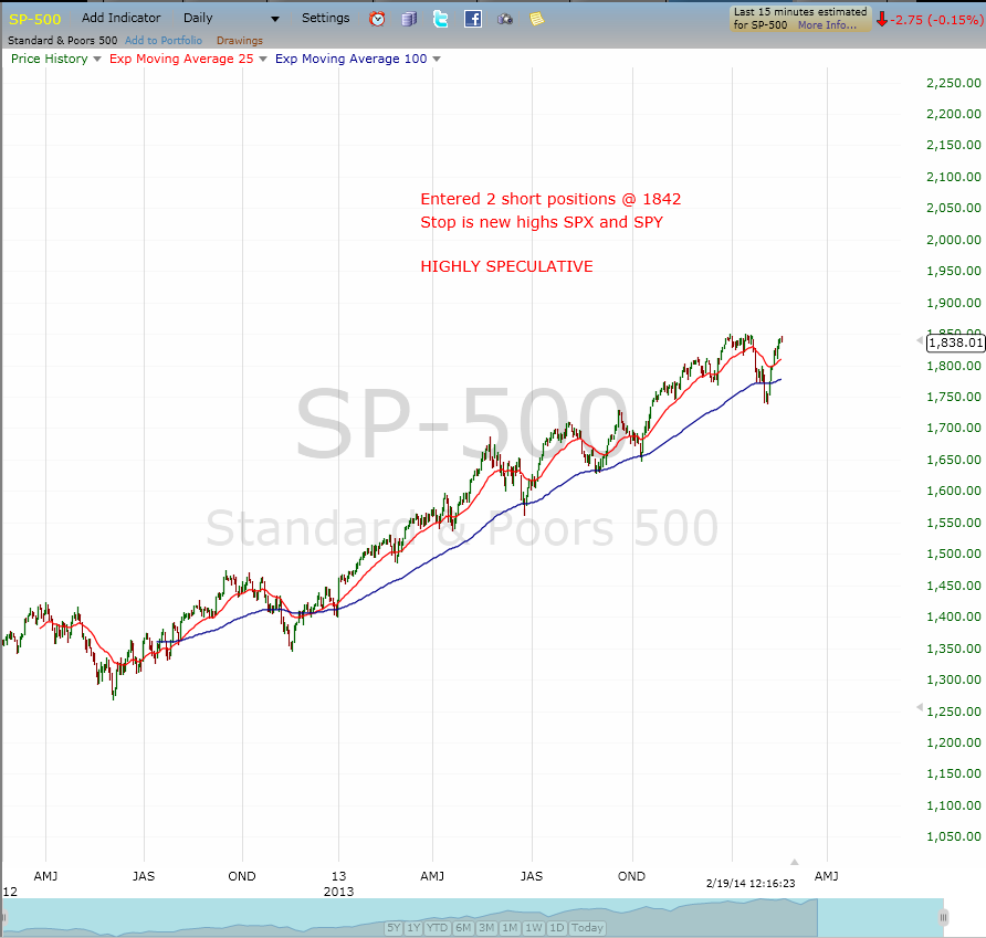 So far, SPY eeked out a new high by a penny, but SPX has not. I need to see a close above the high and I will likely exercise the stop out. I will post the stop out when I take it.