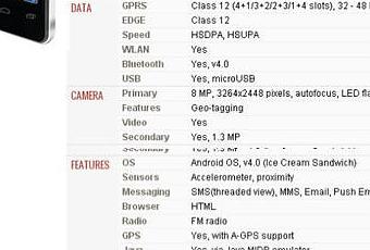 Powered with Android 4.0 Ice Cream Sandwich, this phone comes with 8 MP rear camera, 1.3 MP front camera and 4.5 inch touch screen.
