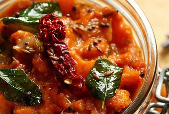 - In a sauté pan heat the oil and add minced garlic. Add the onions and sweat until soft. Add the ginger and diced apples and saute for 5 minutes. Finally add the tomatoes and cook for 10 more minutes.