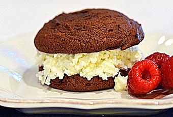 - Sprinkle on coconut and blend in with a spatula. Place in refrigerator until ready to assemble the cookie sandwiches.