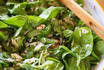 In a large bowl add spinach, feta, red onion, capers, and orzo.