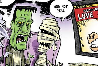 Spooky, Terrifying, And Not Real Political Cartoon is by Phil Hands in the Wisconsin State Journal.