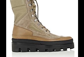 Yes there's only a month left till Spring, but when I see a good boot I have to report on it. The good thing is that this Balenciaga Combat Boot is sort of that inter-seasonal downtown cool boot. The 8" shaft may scream for snow but the canvas panels in the upper flanked by the leather insets over the partial crepe midsole and rubber lug sole calls more for Spring than snow. For Spring, these can be paired with crunchy skinny tapered distressed denim for a nice lean silhouette with a strong-soled finish. Available now at Barneys.com.