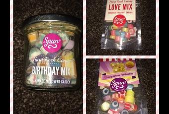 The candy bags seem to come in 2 sizes of 50g and 100g and start from £2.65 a bag. The jars also come in 2 sizes 100g and 200g and start from £4.85. Lollipops are also available and all the products can be purchased from the online shop at Spun Candy