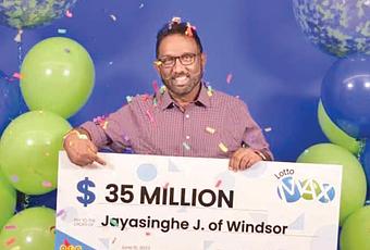 Jay Jayasinghe, a Sri Lankan domiciled in Canada has cashed in to the tune of $35 million, claiming the top Lotto Max prize from the June 6 draw by the Ontario Lottery and Gaming Corporation (OLG), CBC news reported.