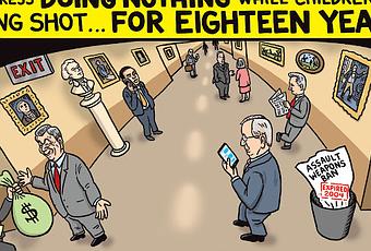 Standing Around And Doing Nothing Political Cartoon is by Ward Sutton at suttonimpactstudio.com.