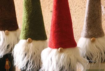 This cute woolen felt set of wine stoppers features Santa wearing four different color caps: brown, gray, green and red. Set includes one of each color.
