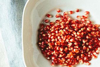 Pomegranates are one of my kids’ favorite fruits although they’re still getting used to the tiny seeds. I had my own experience with new foods, so I understand their trepidation. You may recall that my stepfather gently encouraged me to eat the rind on my Brie cheese, or else – or so I was told – I would be the laughingstock of all of Paris. Without such harsh consequences playing on their young, impressionable psyches, my kids are slowly learning to eat their pomegranate seeds without spitting out the, er, seed. They love the flavor, the juice, and the vibrant red streaks that cover their hands and get under their nails. I can’t resist pomegranate seeds either – that color! That flavor, they’re positively luminescent. So, I tend to use them abundantly during the holidays. Like gemstones, pomegranate seeds make everything a little more festive.
