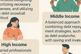 Middle-income people frequently talk about using debt avalanche, debt consolidation, and a balanced approach to debt payoff and saving.