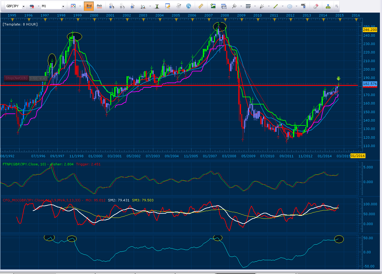 This pair is interesting because one of my monthly indicators is at the same level it was in 1998, 2000, and 2007. Chart: