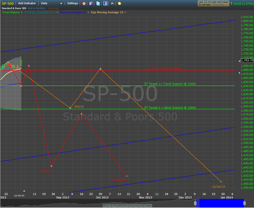 If the scenarios are correct, this is the one more thrust up discussed in the Awaiting Confirmation Post. With the 13 EMA turning up, and the MACD putting in a higher low, the market remains short term bullish with today's move.This potential was anticipated and understood in the July 15, SPY Chart. We are nearing the potential full move and the market may want to go the distance. As always, I am staying present and not guessing at whether it will go the distance. I await confirmation. I cleared out of all currency trades early this week per the Twitter posts. I am staying in the the Wonderwood short positions because though early nothing has changed thesis wise. As always, I will post when they are exited.
