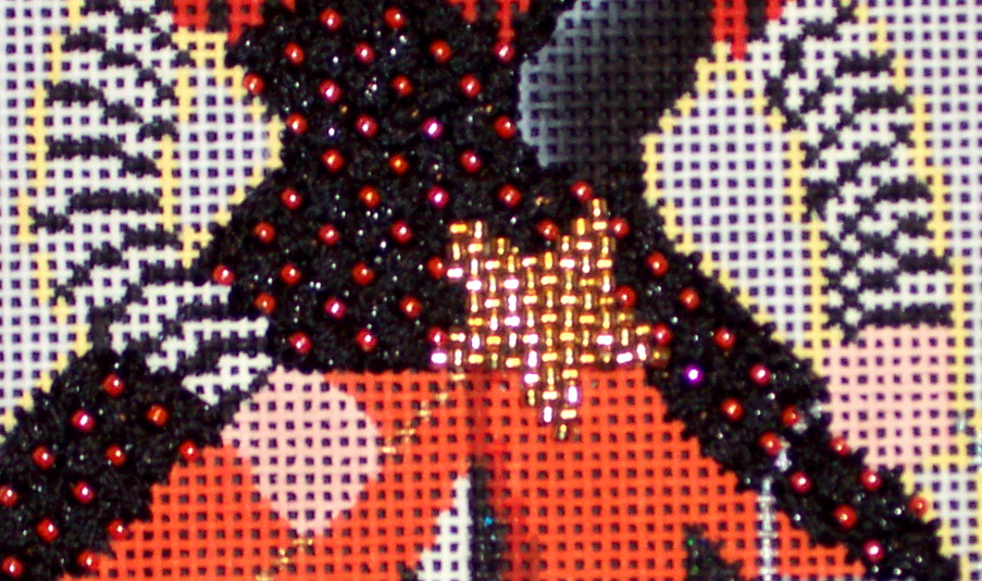 As you may remember from my last post, I was still wondering what I would stitch for my April Stitching Games clue, "The Seven ____". Well, Harry Potter came to the rescue and filled in the blank with the "Seven Known Types of Spells", so of course then I stitched her magic wand! I did it in Basketweave Beading using gold Delica beads and I like the look, but I think now I'll have to replace the beads on her corset as they clash with the beads on the wand. I'm thinking an orange shade of Fyre Werks will do the trick!