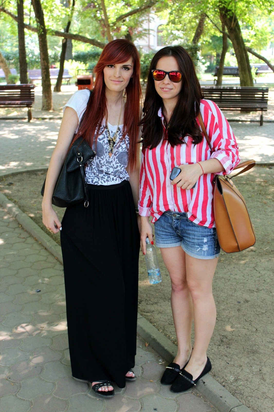 So this will be the story of how I left home for what was supposed to be one day in Bucharest and instead transformed into an entire weekend. It doesn't sound that bad if it weren't for the limited number of clothes I brought with me. To make it more clear I had just this outfit I'm wearing here, a skirt and another tee and the possibilities of mixing and matching were not on my side either. Trying to get something out of it, I went for this combination here for a warm hot day in the city, grabbing a coffee with some lovely bloggers I got the chance to meet. The blogging phenomenon (actually the bloggers) in Romania seems shallow and superficial at the first glance but if you're luck enough you get to meet great people who share the same views and opinions with you. I was lucky to find Raluca, Alice, Liana and Stella so far, at Serendipity Tea, a nice place on Dumbrava Rosie Street, nr. 12, Bucharest.