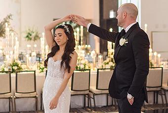 «My wedding dress was a Wona Concept beaded gown purchased at LBR Bridal in Chicago. I tried on many dresses and didn’t think I would have that feeling of “the one” that other brides describe. And then, of course, the last dress at the last appointment was tried on and I immediately knew it. It was flattering with the perfect amount of glam. LBR helped me match the gown with a long train overskirt from Wona Concepts sister brand, Eva Lendel, which I wore from the ceremony. »