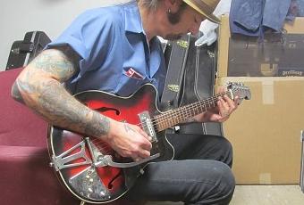 Slide ace guitarist Sturgis Nikides (Low Society) lived in New York in 2007 and found a 60's Imperial in a trashcan. He took it home and brought it along with him to Memphis when he moved there a couple of years later. No it has been rsstored by The Memphis Guitar Spa, a small business working miracles at restoring vintage instruments: