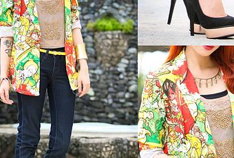 Have you ever tried wearing a loud colorful print before? This blazer from Vaintage is such a statement I did not know what to pair it with. This, along with a lot of accessories were sent to me last week. So instead of pairing it with my “formula” which is shorts + top + this blazer, I thought why not wear jeans? Yes, it may look too formal for my taste but jeans/blazer combo can be both casual and chic. Big thanks to Erleen for sending me accessories. I now have new shiny, spiky stuff.. Teehee!