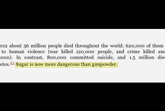 Here's a quote from the brilliant Yuval Noah Harari's new book Homo Deus: A Brief History of Tomorrow. Type 2 diabetes is now a greater killer than violence, and that makes sugar more dangerous than gunpowder (thanks to Gary Taubes for the quote above).