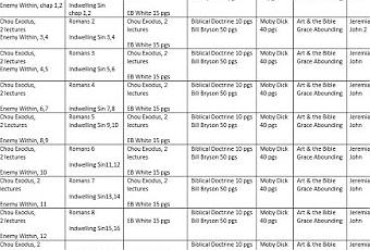 Therefore, I made a schedule to determine if it's even possible to read 7 books, listen 34 seminary lectures, and learn 90 pages of complicated biblical doctrine, plus continue blogging each day and keeping up with my own Bible reading, and all of it absorbed comprehensibly. The answer is to schedule it out over my summer vacation and then 'just do it.'