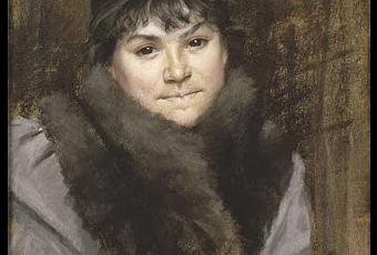 While not an instantly glamorous canvas, only in shades of brown and grey, there is a warmth and beauty to today's muff wearer, the mysterious Mme X, as painted by the Ukrainian-born artist Marie Bashkirtseff. Bashkirtseff studied in Paris and was openly critical of the way that many prestigious art schools did not accept female students, and that she, as a woman artist, did not have the same freedoms as her male counterparts. She petitioned her fellow students at the Academie Julian to be allowed to draw from male models and the result of her actions can be seen in her victorious picture of her doing just that (well, after a fashion...)