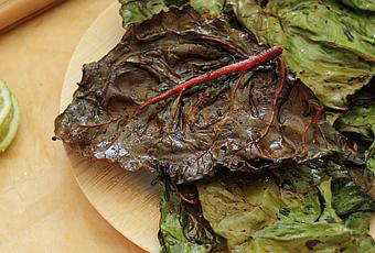 Heat oven to 350. In a small bowl, mix together lime zest, ground ginger, salt, ancho chile powder, and nutritional yeast flakes. Place the chard in a large bowl, and use tongs to coat the pieces with oil. Sprinkle the lime seasoning mix and use the tongs to coat the pieces with the seasonings. In a single layer, place the chard on parchment or Silpat lined baking sheet. Bake for 5-10 minutes, until crispy. They may not crisp evenly, so remove the finished ones and return the pan to the oven to get the rest crispy. I only did one baking sheet at a time, as I didn't want to risk steaming the chard instead of getting it crispy. I did 2 rounds of baking. Drizzle some lime juice and extra salt (if desired) on the chips, once they are all finished. Finally, leave out on cooling rack for a few hours before storing.