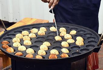 Takoyaki was first popularized in Osaka, where a street vendor named Tomekichi Endo is credited with its invention in 1935. Takoyaki was inspired by akashiyaki, a small round dumpling from the city of Akashi in Hyōgo Prefecture – can you imagine what the reference could be !?!?